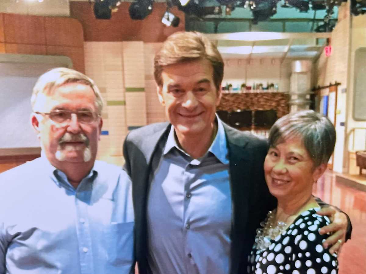 My wife was a fan of The Dr. Oz Show. On Friday, March 10, 2017, while attending the Big East Men’s Basketball Tournament at New York City’s Madison Square Garden, we watched two tapings of his show at the ABC-TV studios at 320 West 66th Street. The 10 AM taping’s topic was acid reflux and a diet to avoid it. The 3 PM taping started with some information on how colon cancer was becoming more prevalent in millennials. Dr. John LaPook from CBS News was interviewed. Dr. Josh Axe also spoke about how some oils can prevent colon cancer. Everyone in the audience got a copy of Axe’s book Essential Oils: Ancient Medicine. I am not sure what segments offered serious medical advice (versus quackery). VIP audience members (who attended both tapings) got to have their picture taken with Dr. Oz. We are pictured below.