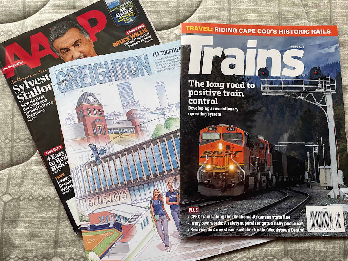 My one secular magazine exception is Trains magazine, as I am a “railfan.” I think that started when I was a kid and my uncle took me to the Northern Pacific depot in Bismarck, North Dakota. Uncle Bill was a ticket agent and telegrapher for the railroad; and he let me hang out with him as he sold tickets, plucked away on the telegraph, and passed track orders (via a hoop) to the freight trains passing by. If I was lucky, one of the big-name passenger trains, like the Mainstreeter or North Coast Limited, would arrive while I was at the depot. As to Trains, I particularly like the photographs, maps, historical articles, and articles on the business of railroading. I also like the “inside” articles about the railroading of the past (e.g., the November 2025 issue had an article entitled “Rock Island sunset: In 1978 the handwriting was on the wall”).