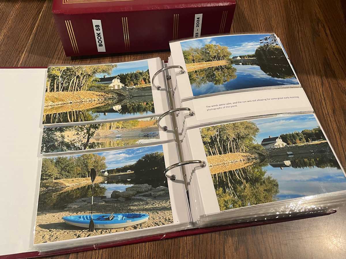I usually work on my albums a few times each year, taking advantage of the quantity discounts that Walgreens offers (e.g., half price if over 75 prints). Working on the albums is a good activity during the winter, on extremely cold days; or in the case of Album #59, on a hot and humid day in August.