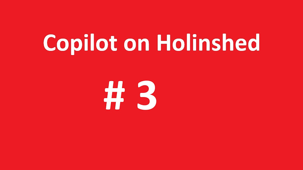 I especially liked Copilot’s third response about Holinshed being a storyteller – “Holinshed’s Chronicles are: narrative; moral; dramatic; [and] filled with speeches, scenes, and character sketches. They are not dry annals. They are proto-dramatic histories.”